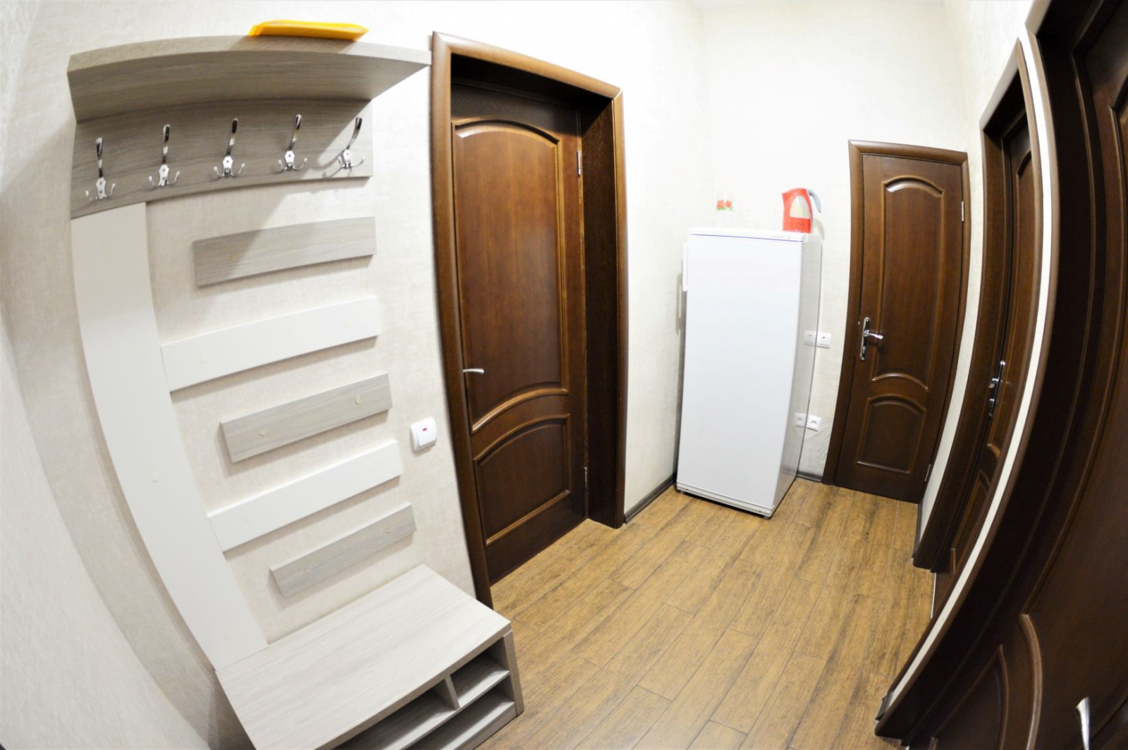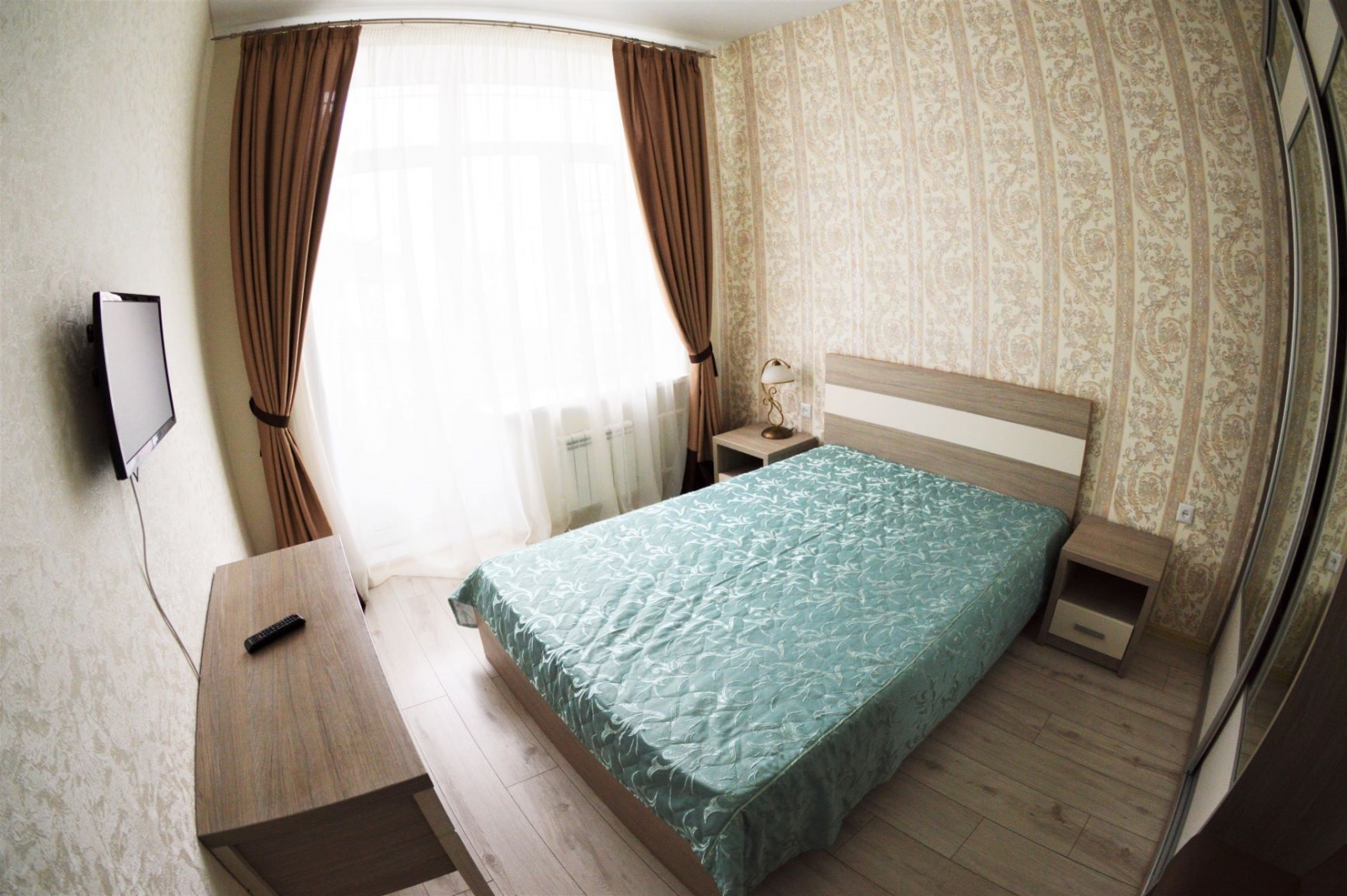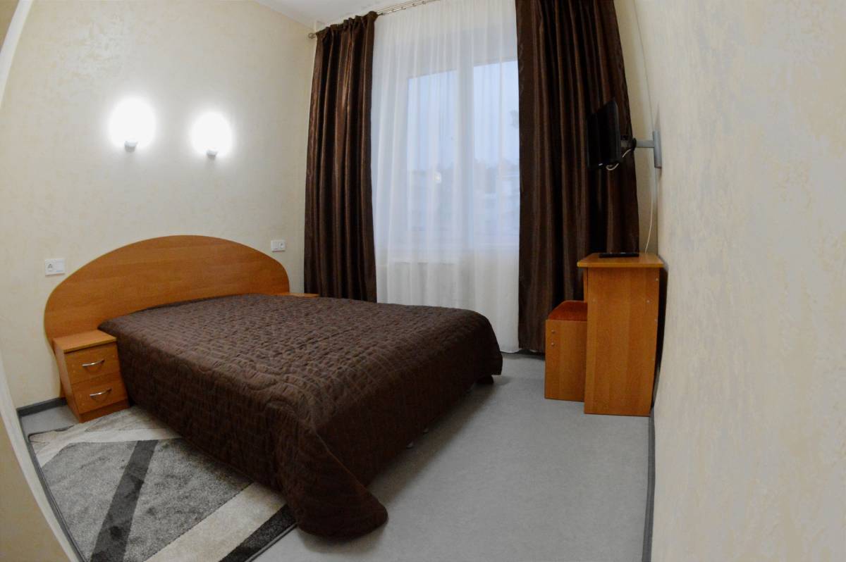 Площадь номера - 25,8 кв.м. 3 осн. места. 1 доп. место. Мебель: вешалка, зеркало, кровати односпальные (2), кровать двуспальная, прикроватные тумбочки, столик туалетный, стулья, тумба, шкаф-купе. Оборудование: телевизор ЖК, холодильник, чайный набор посуды, электрочайник. Санузел: с душевой кабиной, туалетные принадлежности. Сервис: Wi-Fi бесплатно, смена полотенец, смена постельного белья, уборка номера, услуги внутренней телефонной связи.